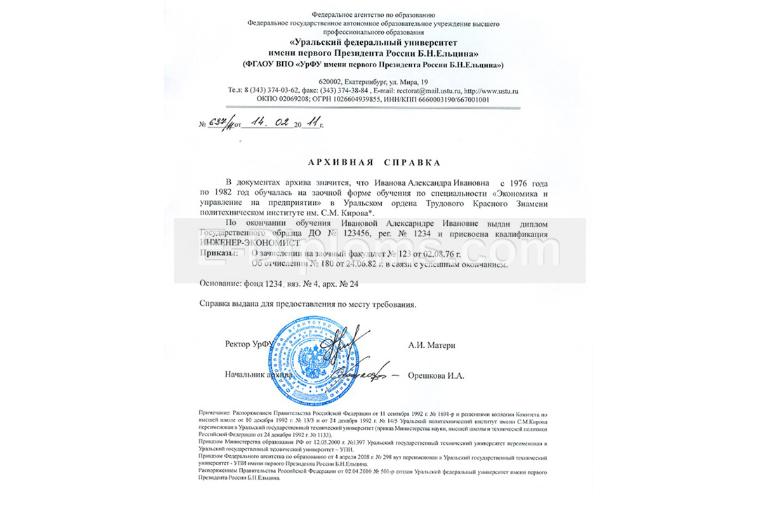 Архивная справка об окончании вуза или ссуза