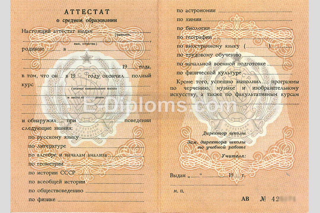 Аттестат за 10 класс СССР купить аттестат ссср 16 000 руб.